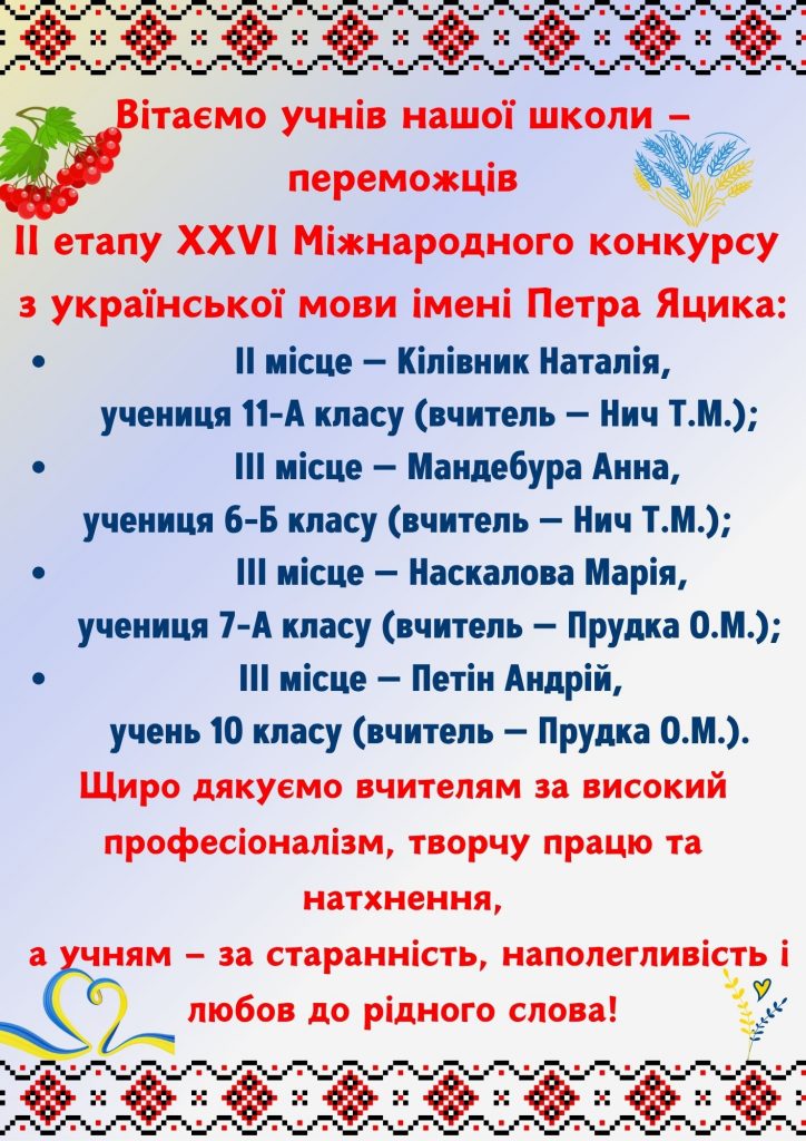 Бачинський Назар -10 клас - ІІІ місце ( Гороховська Н.І.);
